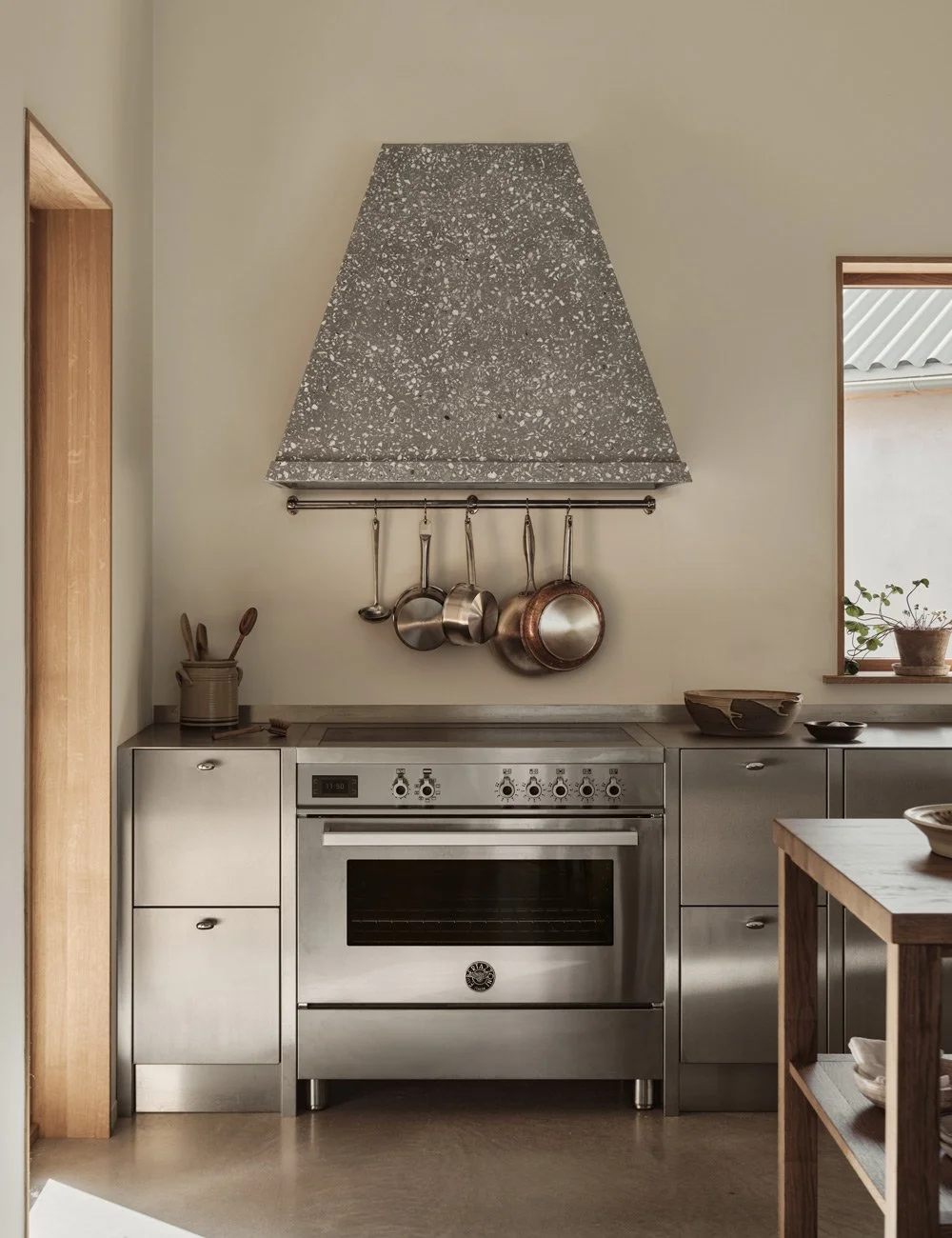 Rustfritt stål kan også kombineres med varmere materialer som tre eller naturstein, for å myke opp helheten og skape et moderne kjøkken med industriell touch, som samtidig føles varmt og innbydende.