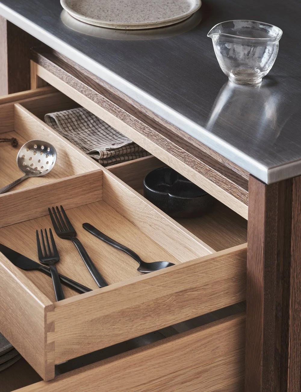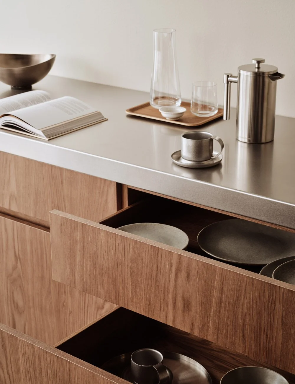 Å velge en rustfri benkeplate på kjøkkenet er en enkel måte å introdusere materialet uten at det tar over. Det er et godt valg når du ønsker å få inn rustfritt stål på en mer subtil måte – eller – hvis du vil skape en spennende kontrast til andre materialer.