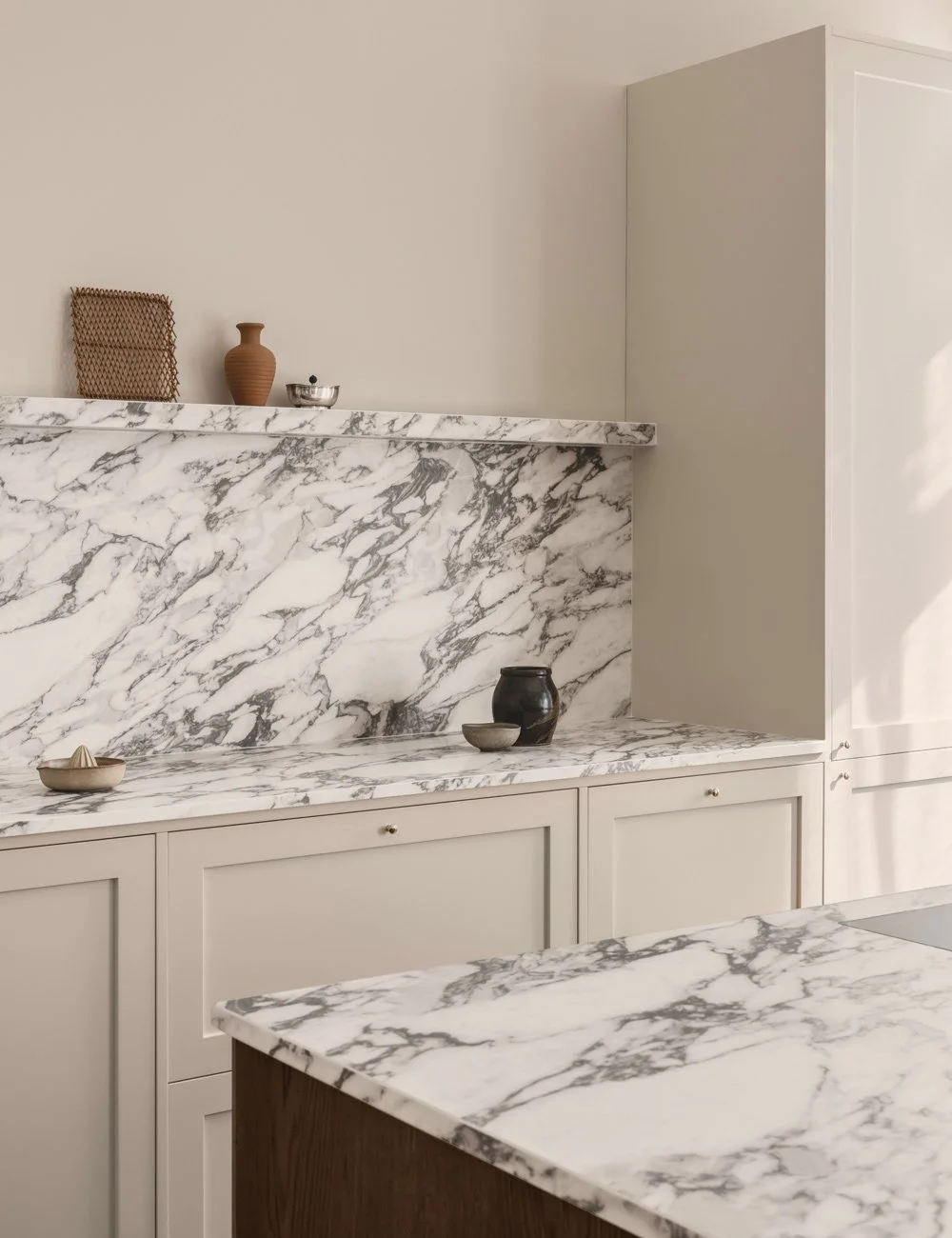Til underskap og høyskap ble det valgt skuffer og fronter i shakerstil – et klassisk valg og et uttrykk som passer perfekt til leilighetens historiske karakter.