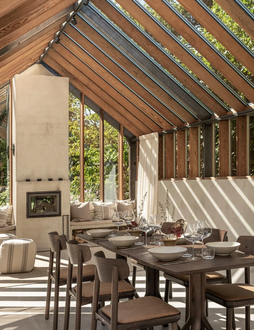 Når man trer inn i orangeriet, møtes man umiddelbart av den vidunderlige duften av tre, lysets vandrende skyggespill gjennom glasspartiene og den omgivende naturens beroligende nærvær.