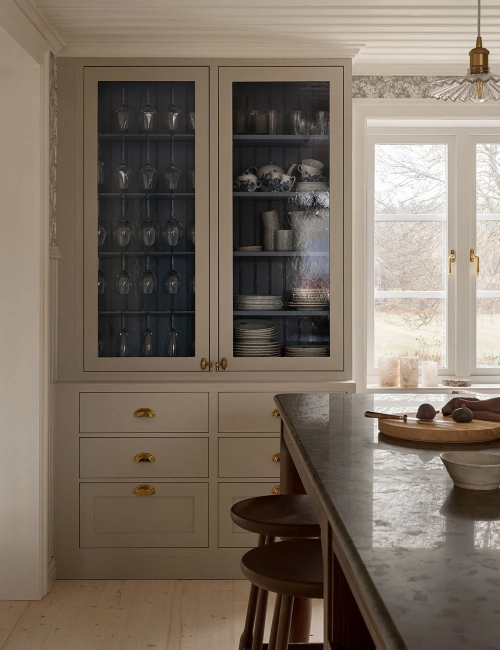 Vitrineskapet er en enkel måte å skape en personlig og levende følelse på kjøkkenet – med farger, materialer og utvalgte dekorative gjenstander som gjenspeiler din unike stil.